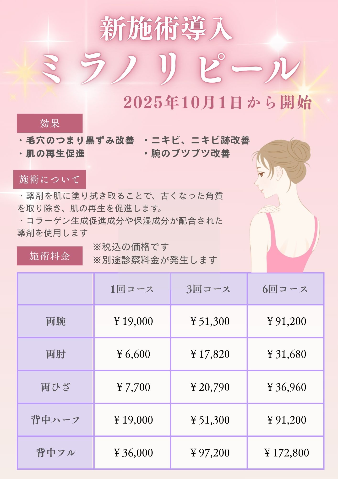 この度、10/1~ミラノリピールを開始することとなりましたので、皆様にお知らせです。