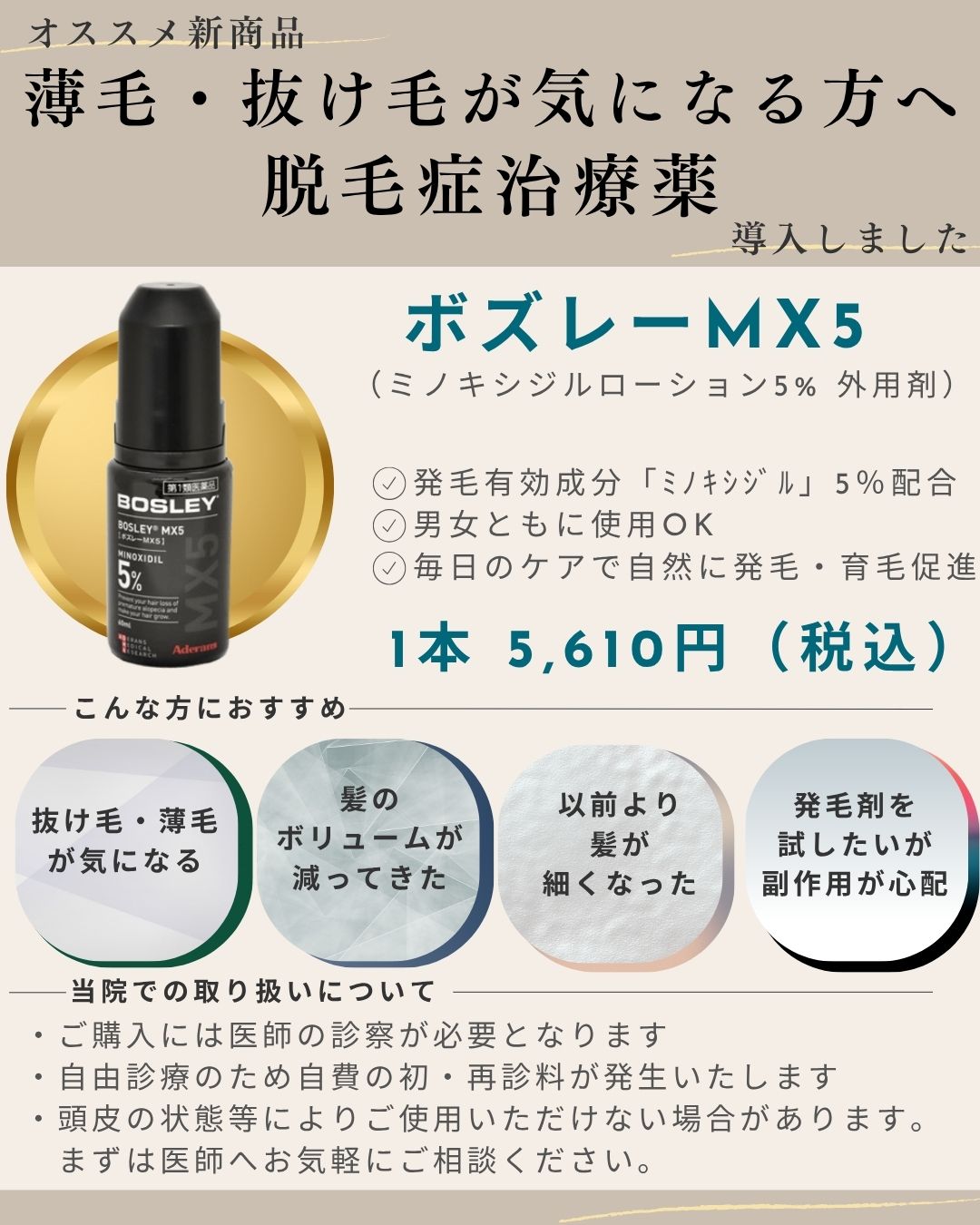 2025.10.27 お知らせ ボズレーMX5取り扱いのお知らせ こんにちは、ことに皮フ科クリニックです。 この度、ボズレーMX5の取り扱いを開始いたしましたので、 皆様にお知らせです。 ご興味のある方はお気軽にお問合せください。