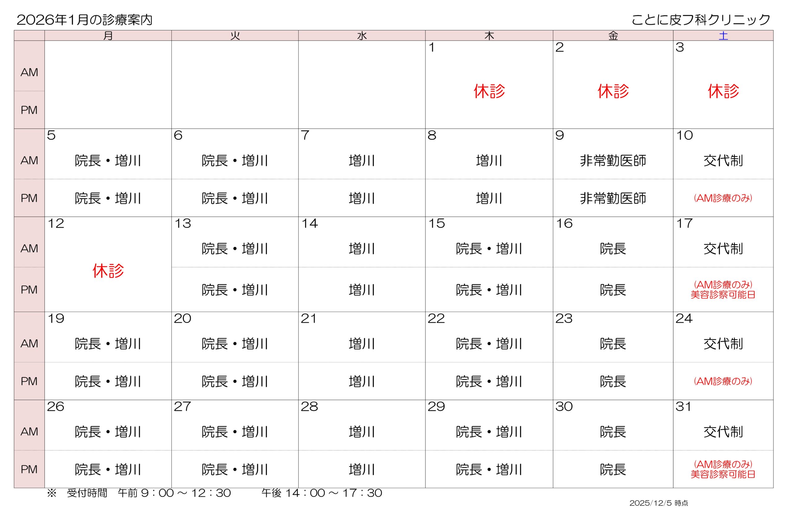 9日(金)は非常勤医師による診察のため美容診察不可となります。予めご了承ください。